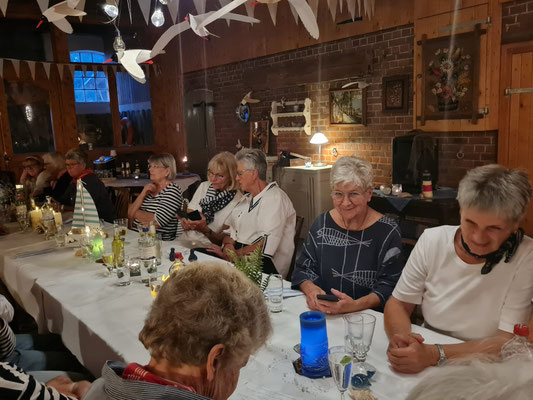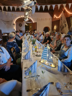 Am 19.08.2025 trafen wir uns um 19:30 Uhr in Haselau, Hohenhorster Chaussee 58 bei Bärbel Schuldt zu einem "Maritimen Abend". Es wurde ein schöner Abend mit viel Zeit zum Essen und Klönen in geselliger Runde. Alle kleideten sich dem Motto entsprechend.